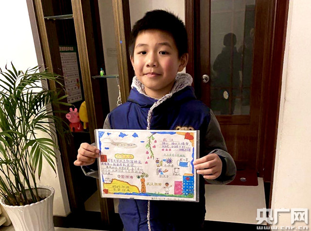 兒子劉泊遠為李莎莎繪制的加油畫報(央廣網(wǎng)發(fā) 通訊員曾理 攝)