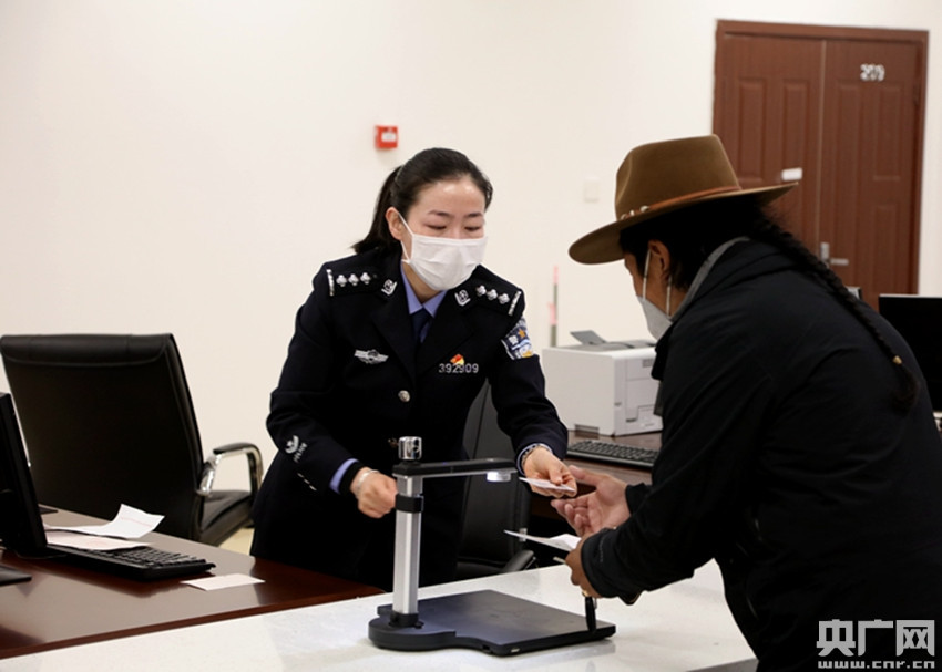 民警為前往群眾辦理邊境通行證(央廣網(wǎng)發(fā) 通訊員仁青旺堆 攝)