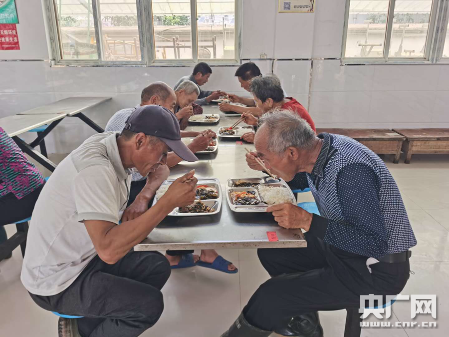 村民們在臨時安置食堂就餐(央廣網(wǎng)發(fā) 通訊員供圖)