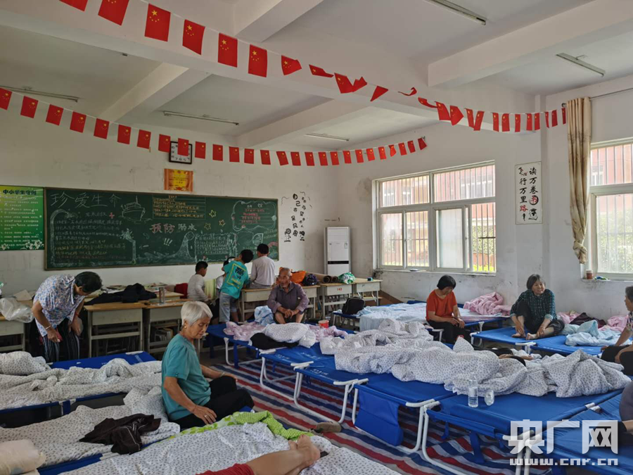 村民田鋼為告訴記者,他們是22日被村里的沖鋒舟接到安置點的,這里吃住都有保障,心里不慌不愁!俺缘煤茫〉煤,條件蠻好的,飯都燒得蠻好吃。對我們老百姓好,我們對政府都很感激!