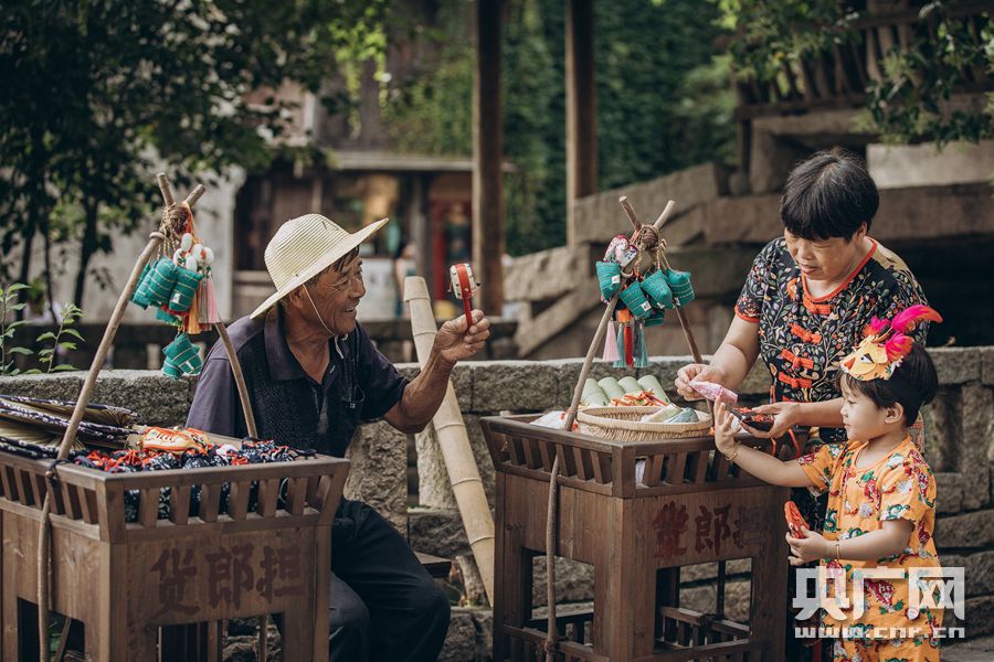 烏鎮(zhèn)西柵老街上的傳統(tǒng)貨郎擔(dān)(央廣網(wǎng)發(fā) 通訊員供圖)