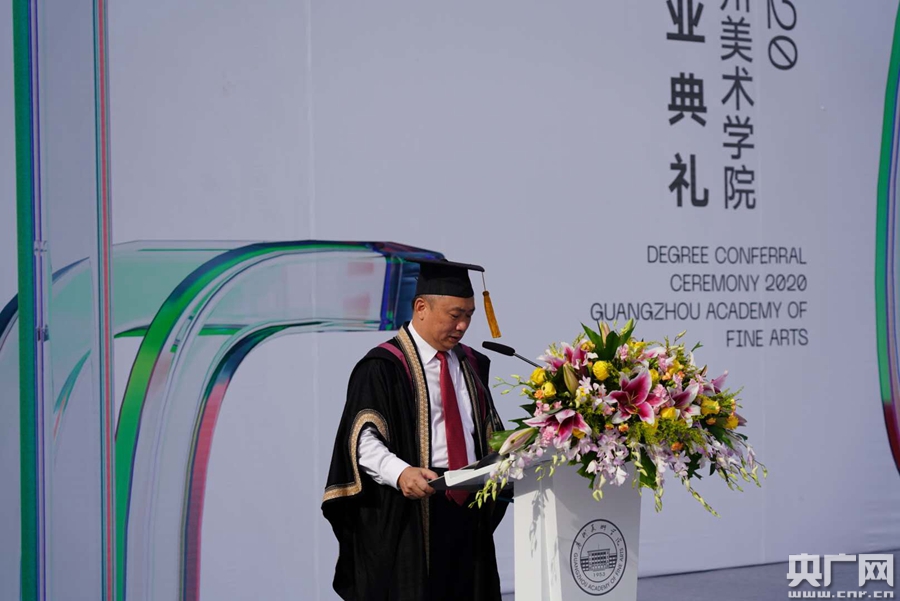 央廣網(wǎng)廣州6月29日消息(記者鄭澍 通訊員江粵軍)6月29日,廣州美術(shù)學(xué)院為1500多名畢業(yè)生舉行一個簡約而莊重的畢業(yè)儀式。廣州美術(shù)學(xué)院黨委書記謝昌晶、院長李勁堃致辭,廣州美術(shù)學(xué)院黨副書記黃啟明、穆林,廣州美術(shù)學(xué)院黨副院長范勃、蔡擁華,各部門和二級學(xué)院的負(fù)責(zé)人參加了畢業(yè)典禮暨學(xué)位授予儀式。