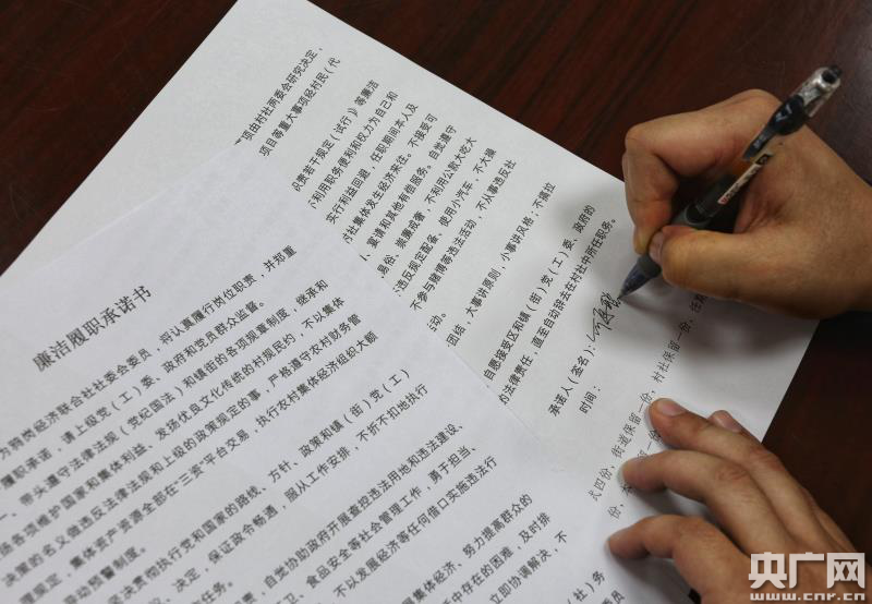 公開履職承諾,立下監(jiān)督“靶子”。組織當選人簽署和公開《廉潔履職承諾書》,存入村社干部廉政檔案,把村社干部廉潔履職的基本要求、組織和群眾的期望以及當前村社干部履職中可能出現(xiàn)的廉潔風險納入其中。同時,村社干部要在年度“三述”中向組織、黨員和群眾代表匯報履職承諾情況,在群眾面前立下監(jiān)督的“靶子”。