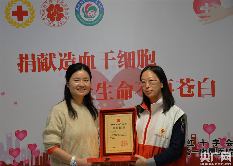 造血干細(xì)胞捐獻(xiàn)志愿者夏曉雯(左)捐獻(xiàn)成功(央廣網(wǎng)發(fā) 通訊員供圖)