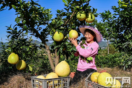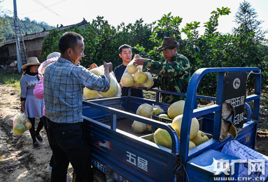 貧困戶采摘柚子(央廣網(wǎng)發(fā) 通訊員供圖)