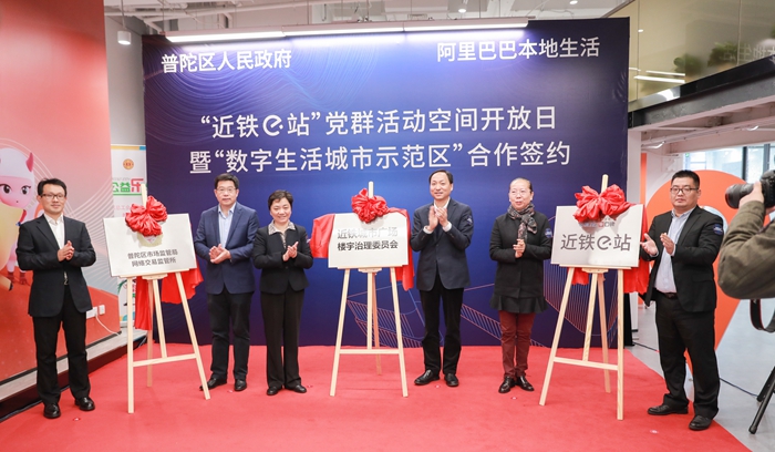 會上,上海市委組織部副部長孫甘霖,上海市市場監(jiān)管局一級巡視員胡浩,普陀區(qū)區(qū)委副書記、區(qū)長姜冬冬,阿里巴巴副總裁方建生,阿里本地生活副總裁鄭威等出席活動,并為“近鐵e站”揭牌,標志著普陀樓宇黨建進入引領(lǐng)、服務(wù)、治理“三位一體”相互融合、相互促進的新階段。普陀區(qū)與阿里巴巴本地生活簽署上海首個“數(shù)字生活城市示范區(qū)”戰(zhàn)略合作協(xié)議,雙方表示將推動普陀區(qū)在線新經(jīng)濟、數(shù)字新基建的發(fā)展,助力普陀區(qū)全面加速打造數(shù)字經(jīng)濟新優(yōu)勢。