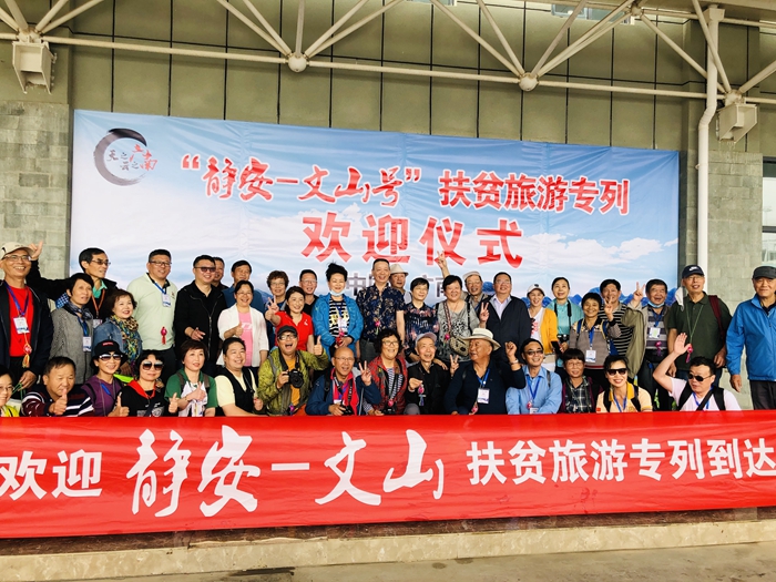 2020年跨省游政策放開(kāi)后全國(guó)首趟鐵路扶貧旅游專列“靜安-文山號(hào)”成功開(kāi)行(央廣網(wǎng)發(fā) 靜安新聞辦供圖)