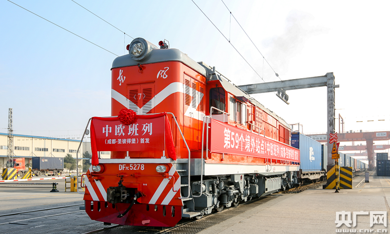央廣網成都2月22日消息(記者韓民權)2月21日,裝載“一帶一路”重大項目建設配套物資的中歐班列從成都國際鐵路港鳴笛緩緩駛出,預計13天后抵達目的地俄羅斯圣彼得堡。這是成都至俄羅斯圣彼得堡開行的首趟中歐班列,也是中歐班列(成渝)號牛年新春成都在境外拓展的第59個境外站點。