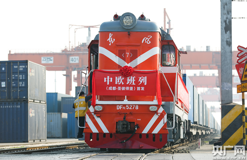 成都至俄羅斯圣彼得堡中歐班列首發(fā)(央廣網發(fā) 成都青白江區(qū)委宣傳部供圖)