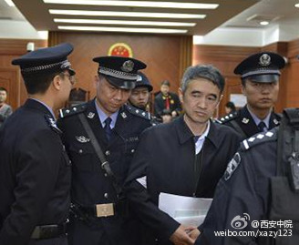 法警將被告人廖少華帶出法庭。據(jù)西安中院微博