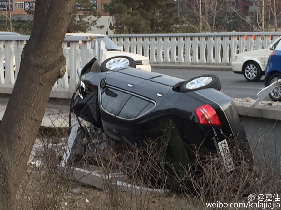 下午4時30分,北京晨報記者趕到事發(fā)現(xiàn)場,看到出事轎車沖出圍欄側(cè)翻在低于路面約一米的綠化帶上。鋼筋混凝土材質(zhì)的圍欄被撞毀約3米,橋面上有約80米左右的黑色剎車痕跡,車輛周圍散落著大量水泥塊與車體碎片,車前保險杠也被撞飛到離車三四米遠的地方。車內(nèi)人員已被轉(zhuǎn)移,現(xiàn)場無交警。周圍不少圍觀市民對此議論紛紛,“晚高峰堵成這樣還能把圍欄撞了,這車開得太猛了!