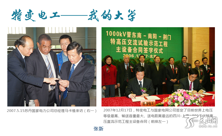 1988年,26歲的張新以父母的房產(chǎn)為抵押,租賃承包了瀕臨倒閉的新疆吉昌市特種變壓廠,開(kāi)始了他的創(chuàng)業(yè)之路。依靠科技進(jìn)步、艱苦創(chuàng)業(yè),張新帶領(lǐng)特變電工以一往無(wú)前的進(jìn)取精神和敢為人先的創(chuàng)新實(shí)踐,1993年成為國(guó)內(nèi)變壓器行業(yè)第一家實(shí)行股份制改造的企業(yè),1997年成為全行業(yè)第一家上市公司。進(jìn)入新世紀(jì),特別電工著力深化創(chuàng)新型企業(yè)建設(shè),分別在新疆、四川、湖南、天津、山東、遼寧、陜西、南京等地建有九個(gè)現(xiàn)代化的工業(yè)園區(qū),建立了輻射美國(guó)、日本、歐盟、俄羅斯、東盟、上合組織、非洲、海灣等60多個(gè)國(guó)家和地區(qū)的銷售服務(wù)網(wǎng)絡(luò)。集團(tuán)公司躋身世界機(jī)械制造業(yè)500強(qiáng),變壓器產(chǎn)能達(dá)到2億千伏安,居世界第一位,已成為我國(guó)重大裝備制造業(yè)的核心骨干企業(yè)和新疆新型工業(yè)化發(fā)展的標(biāo)桿。