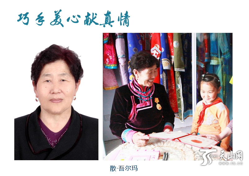 她的蒙古族服飾及傳統(tǒng)手工藝品制作,匠心獨(dú)具,產(chǎn)品暢銷國(guó)內(nèi)外。她富裕不忘群眾,免費(fèi)給收30多名村民傳授技藝,帶領(lǐng)大家脫貧致富。她熱心幫助他人,每年都免費(fèi)為村里的孤寡老人和可憐的孩子制作衣物,為困難家庭送去生活必需品和生活費(fèi),為災(zāi)區(qū)帶頭捐款捐物,獻(xiàn)上一片愛(ài)心……只要?jiǎng)e人有困難,她都會(huì)不遺余力地去幫助。她是基層群眾心目中最親近、最信任的人。