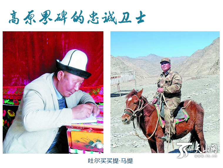 他忠誠(chéng)守護(hù)祖國(guó)的西部邊防線36年,行程13萬(wàn)多公里。36年來(lái),他穿壞了400多雙鞋,平均10天不到就穿壞一雙。36年來(lái),有5匹馬伴他老去。36年來(lái),28個(gè)古爾邦節(jié)、春節(jié)他沒(méi)跟家人團(tuán)聚。巡邏路上,灑下的是吐?tīng)栙I(mǎi)買(mǎi)提 馬提的汗水,鋪滿的是吐?tīng)栙I(mǎi)買(mǎi)提 馬提的愛(ài)國(guó)情。