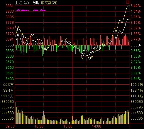 收盤:滬指縮量大漲3.44% 近400只個(gè)股漲停
