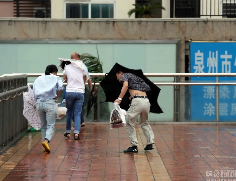 據(jù)中國(guó)天氣網(wǎng),今年第13號(hào)臺(tái)風(fēng)“蘇迪羅”于8月8日22時(shí)10分前后在福建莆田登陸。預(yù)計(jì)它隨后將進(jìn)入我國(guó)內(nèi)陸,受其影響,臺(tái)灣、福建、廣東、江西、湖北、上海、浙江、安徽、江蘇等9省市有大范圍強(qiáng)風(fēng)暴雨。圖為2015年8月8日,福建晉江,臺(tái)風(fēng)“蘇迪羅”來(lái)襲,市民撐傘艱難前行。 東方IC