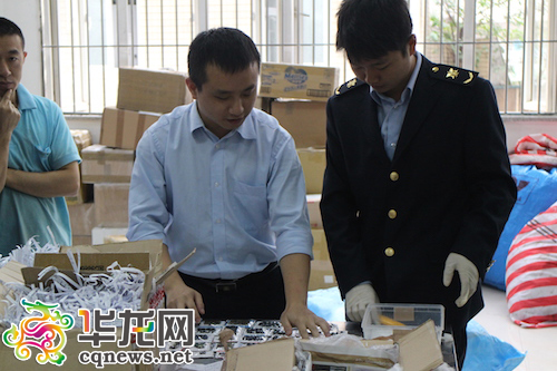檢疫人員打開郵包清點(diǎn)被截獲的物品。 重慶出入境檢驗(yàn)檢疫局供圖 華龍網(wǎng)發(fā)
