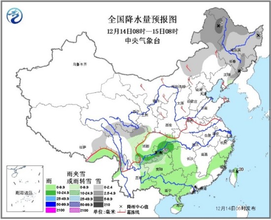 另外,從明天起,我國(guó)南方的降水范圍將逐漸縮小,強(qiáng)度減弱。今天白天到夜間,川西高原、貴州北部、云南東北部等地有小到中雪或雨夾雪,局地大雪;西南地區(qū)東部、湖南西部和南部、浙江南部、福建大部、華南大部等地有小到中雨或陣雨。