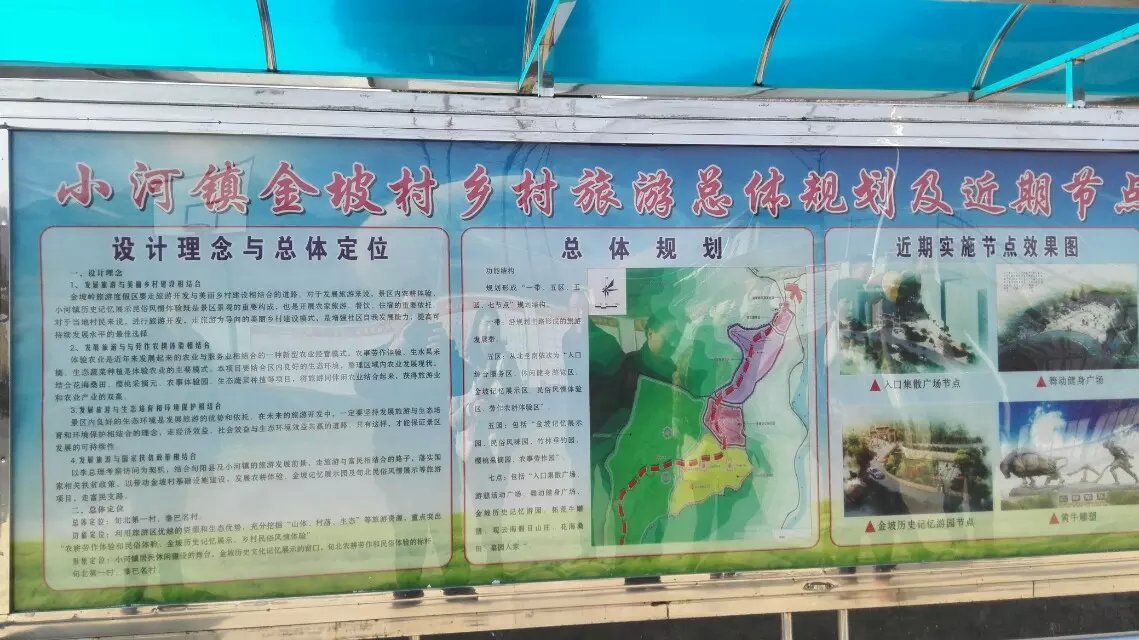 鄉(xiāng)村旅游發(fā)展規(guī)劃正在實(shí)施,根據(jù)《旬陽縣小河鎮(zhèn)金坡村鄉(xiāng)村旅游度假區(qū)總體規(guī)劃及主要節(jié)點(diǎn)方案設(shè)計(jì)》,規(guī)劃中對(duì)金坡村的形象定位為:小河鎮(zhèn)居民休閑健身的舞臺(tái);金坡歷史文化記憶展示的窗口;旬北農(nóng)耕勞作和民俗體驗(yàn)的標(biāo)桿,一個(gè)生態(tài)、旅游、民富的新金坡即將展現(xiàn)在世人面前。