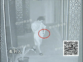 這名穿著浴服的男子,漸漸靠近包廂的房門,從摸清情況到出來,也就半分多鐘,出門時,男子左手多了一件黑黑的東西,隨后塞進(jìn)了褲袋。