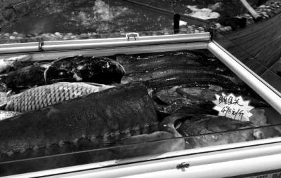 2月16日,魚(yú)類展示柜上新增了一個(gè)黃色紙殼價(jià)簽,黑筆手寫(xiě)“鰉魚(yú)頭498元/斤”。