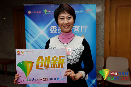 全國政協(xié)委員董圓圓為“創(chuàng)新”發(fā)展理念點贊。中國青年網(wǎng)記者 李拓 攝