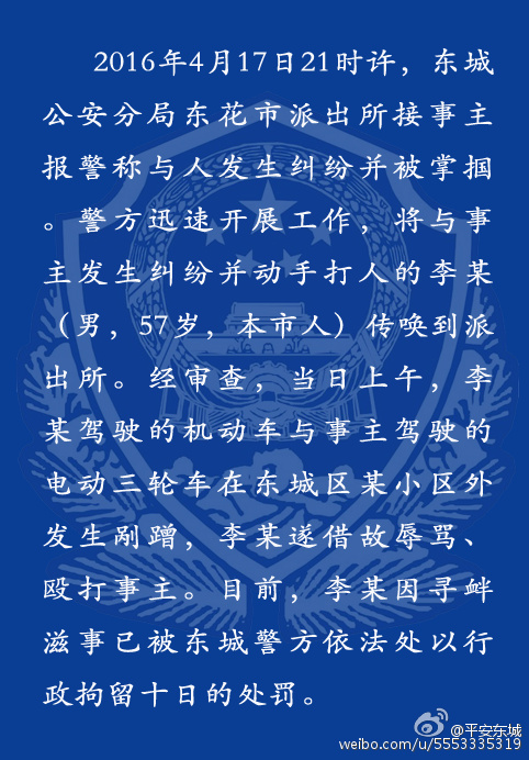 北京掌摑快遞小哥司機李某因?qū)め呑淌卤恍姓辛羰?/p>