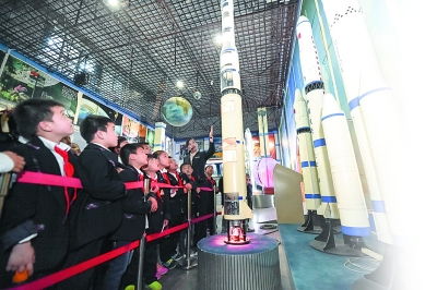 日前,合肥市小學(xué)生們在安徽省科技館內(nèi)參觀航天模型。新華社發(fā)