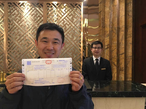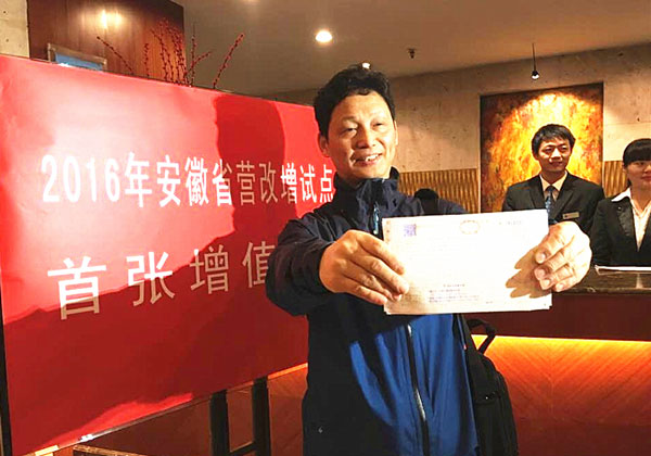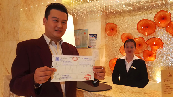 【河南】5月1日零點(diǎn),在鄭州綠地JW萬豪酒店,河南省全面推開營(yíng)改增試點(diǎn)納稅人首張?jiān)鲋刀惏l(fā)票順利開出,來自盧森堡貨運(yùn)航空公司鄭州代表處的MichaelNeuhuber先生幸運(yùn)地成為這張001號(hào)增值稅發(fā)票的擁有者,標(biāo)志著河南省全面推開營(yíng)改增試點(diǎn)改革大幕拉開。