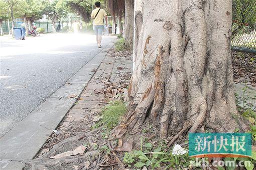 ■嫌疑人得手后從教學樓駕車往體育館方向逃逸,兩名同學駕車從后追趕,兩車開至體育館對開斜坡路段發(fā)生碰撞,兩名同學均被摔下車。事發(fā)地點附近樹上有很明顯的刮痕。