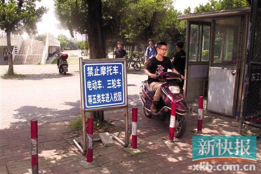 ■在進出廣工校園處豎有禁止摩托車、電動車進出校園的告示。