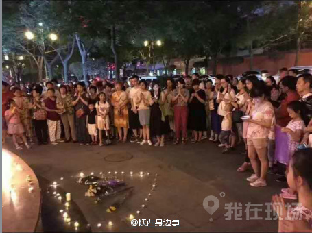 7月5日晚,部分業(yè)主在小區(qū)門口擺上蠟燭悼念逝者。圖據(jù)@陜西身邊事。