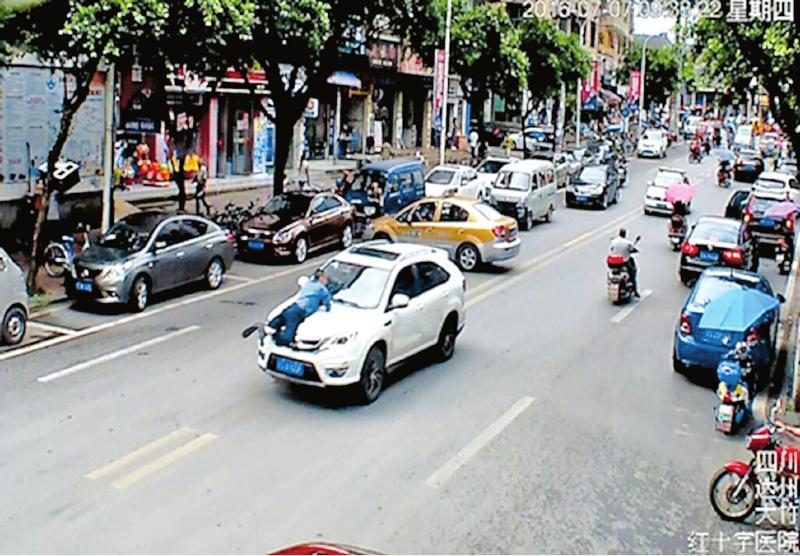 一輛白色的比亞迪轎車(chē),載著一車(chē)乘客在市區(qū)橫沖直撞,并以時(shí)速50公里左右的速度,將一名執(zhí)法人員撞上引擎蓋,推行了300多米。緊接著,該轎車(chē)來(lái)了一個(gè)急轉(zhuǎn)彎,把執(zhí)法人員甩下地面后繼續(xù)逃跑……7月7日,電影中的“速度與激情”,在達(dá)州市大竹縣城真實(shí)上演。