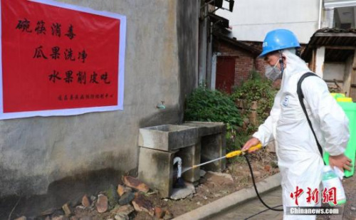 9月30日,救援人員在浙江麗水遂昌山體滑坡災(zāi)區(qū)進(jìn)行消毒。中新社記者 何蔣勇 攝