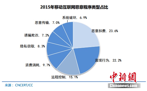 2015年移動互聯(lián)網(wǎng)惡意程序類型占比。