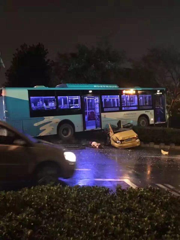 (原標(biāo)題:南京仙林一公交車碾壓出租車 目擊者:2人當(dāng)場死亡)