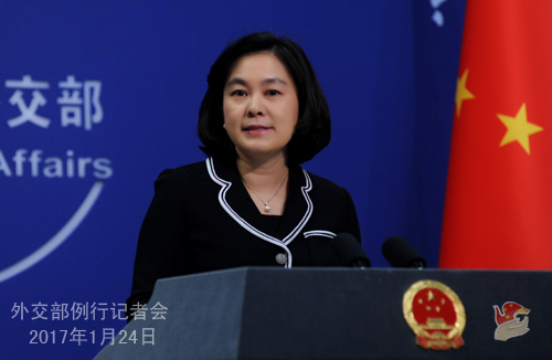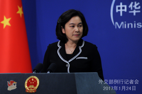 答:對于美國新政府的言行和政策,各方都在關(guān)注。對于中方來說,我們在南海問題上的立場是明確和一貫的,我們在南海的行動是正當(dāng)合理的。不管有關(guān)國家形勢發(fā)生什么變化,說了什么話,想做什么事,中國堅定維護(hù)自身在南海領(lǐng)土主權(quán)和海洋權(quán)益的決心不會改變。同時,我們堅持與直接有關(guān)當(dāng)事國通過談判和平解決有關(guān)爭議的決心也不會改變。
