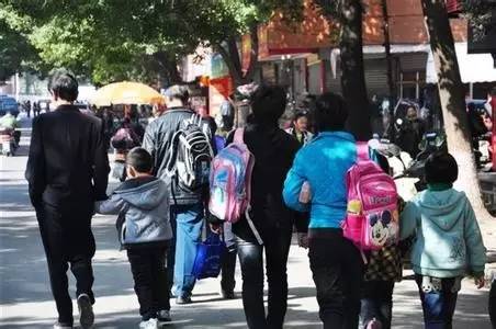 到了教學(xué)樓后,幾個(gè)孩子坐在凳子上翹著腿聊天,前面是爸爸媽媽,甚至是頭發(fā)花白的爺爺奶奶,或蹲或跪,替娃換好鞋子,再目送孩子走進(jìn)教室。
