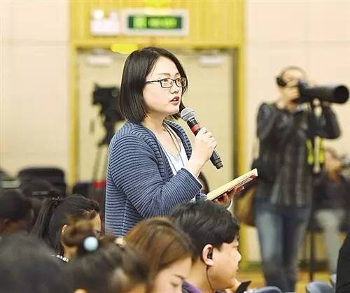 ↑經(jīng)濟日報記者袁勇就相關問題提問