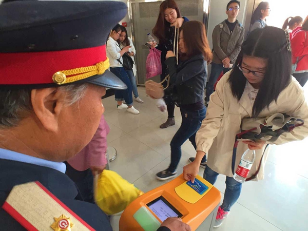 記者在始發(fā)站黃土坡車(chē)站外見(jiàn)到,鐵路部門(mén)采取了站外限流的措施,游客分批次進(jìn)站候車(chē),可以刷公交一卡通進(jìn)站乘車(chē)。工作人員提示,公交卡余額低于16元將無(wú)法刷卡乘車(chē)。(央視記者 馬力)