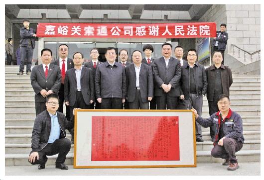 4月6日,執(zhí)行申請(qǐng)人嘉峪關(guān)某公司為嘉峪關(guān)中院送去了裝裱一新的感謝信,交給該院院長(zhǎng)茹作勛。