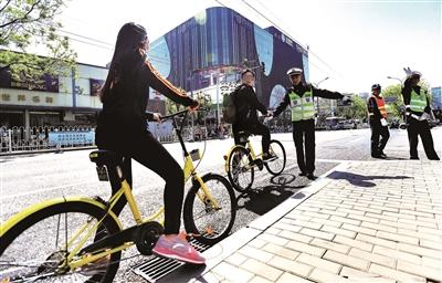 交警發(fā)現(xiàn)有年輕人騎著小黃車穿行在機(jī)動車道,立即攔下并糾正攝影/柴程