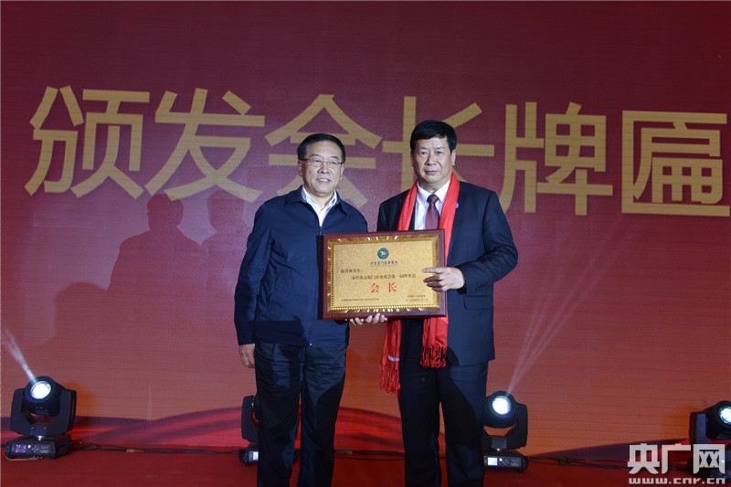 中國僑聯(lián)黨組書記、主席林軍向會長蔣清林頒發(fā)牌匾。