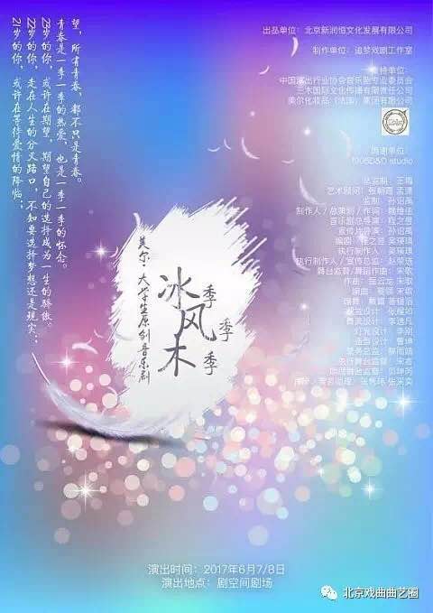 央廣網(wǎng)北京6月2日消息(張瑜瑜)6月7日至8日,由北京舞蹈學院大學生原創(chuàng)的音樂劇《冰季.風季.木季》將在劇空間劇場上演。這是由北舞追夢戲劇團隊傾力打造的第一部原創(chuàng)作品,由北京新潤恒文化發(fā)展有限公司出品。