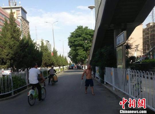 6月5日,記者從蘭州交警部門了解到,一男子酒后無照駕駛摩托車闖紅燈,不但不配合民警執(zhí)法,反而持鐵棍暴力襲警。圖為男子持鐵棍行兇!〗痪块T提供 攝