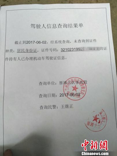 經(jīng)上網(wǎng)核查嫌疑人為無照駕駛!〗痪块T提供 攝