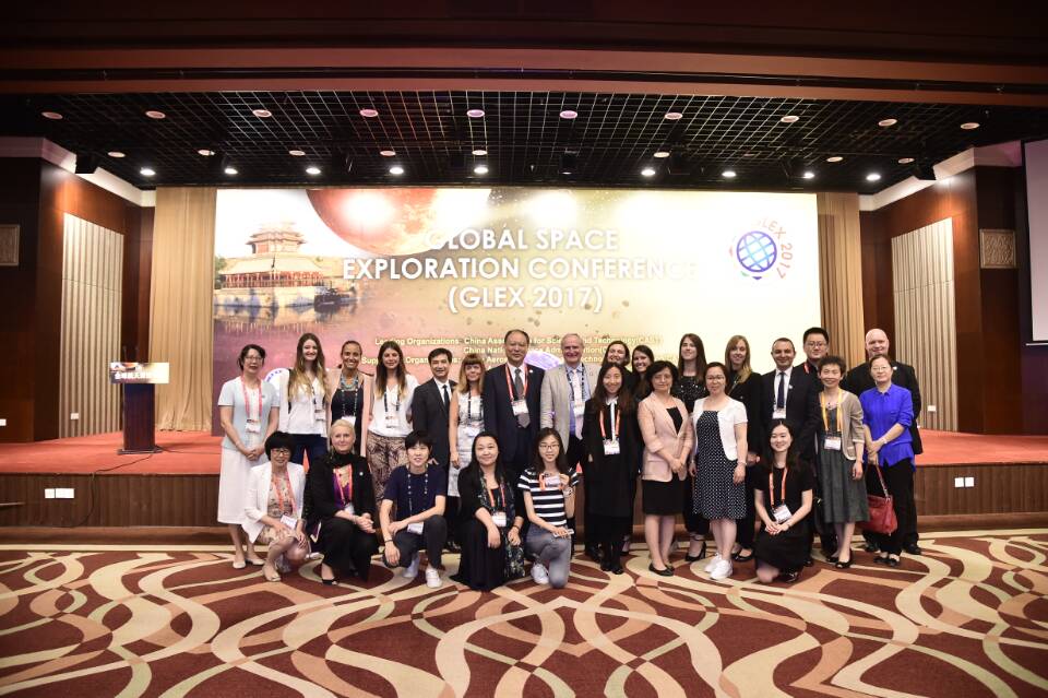 備受關(guān)注的2017年全球航天探索大會8日在京落下帷幕,與會代表們在主會場合影留念。