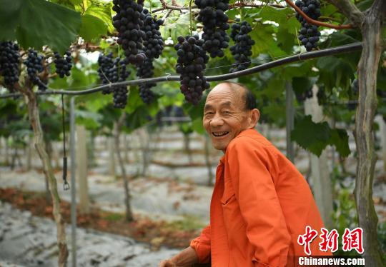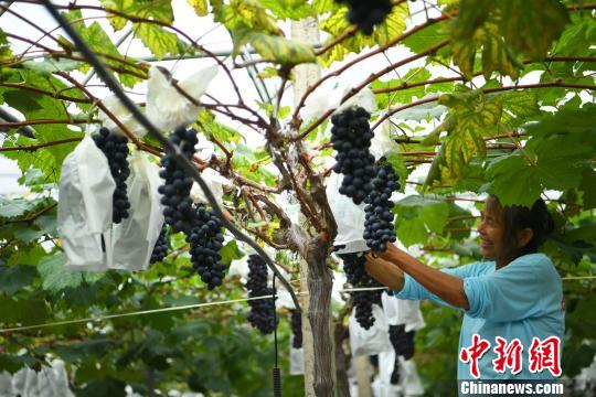 圖為農(nóng)民正在田地里采摘葡萄!£惓z