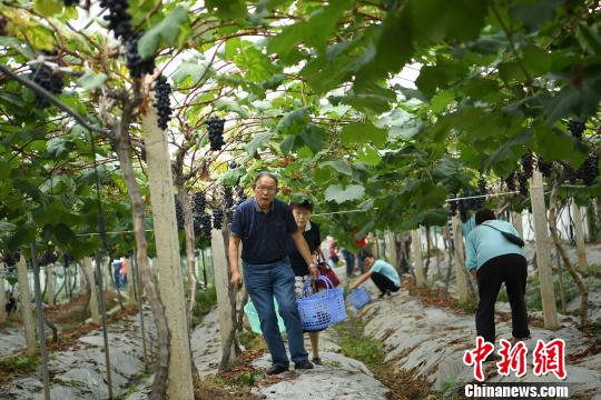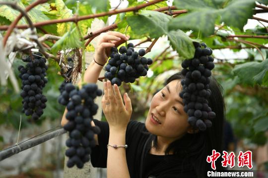 圖為市民葡萄園內(nèi)自己體驗(yàn)采摘!£惓z