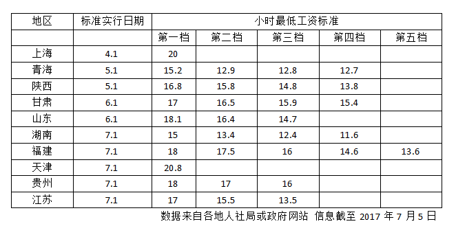 此外,安徽省于2017年2月1日開始實施新的最低工資規(guī)定,細(xì)化最低工資標(biāo)準(zhǔn)的規(guī)則,保障勞動者申訴、申請仲裁的權(quán)利。而四川省、廣東省日前已明確都表示,2017年最低工資標(biāo)準(zhǔn)暫不上調(diào),將按照以往發(fā)布的標(biāo)準(zhǔn)執(zhí)行。
